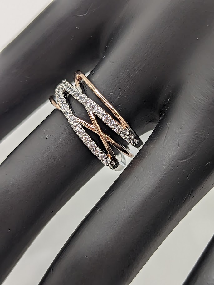 A gorgeous Rose Gold Cubic Zirconia Criss Cross Casual Dress Ring. A Real elegant look. At a bargain price. A beautiful casual ring for any occasion to impress.